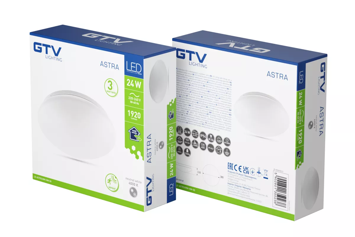 PLAFONIERA ASTRA LED microwave, Ø380mm, 4000K, 24W, 1920lm, AC180-250V, 50/60 Hz, PF>0,5, IP54, 3y