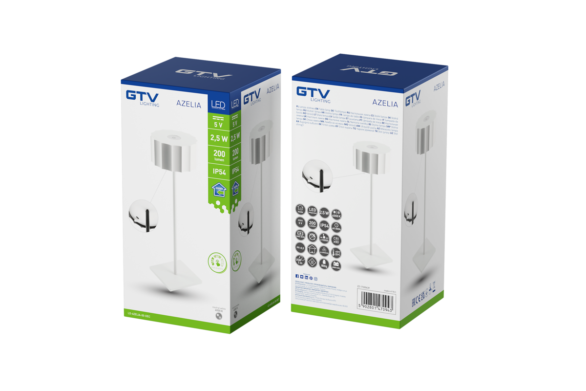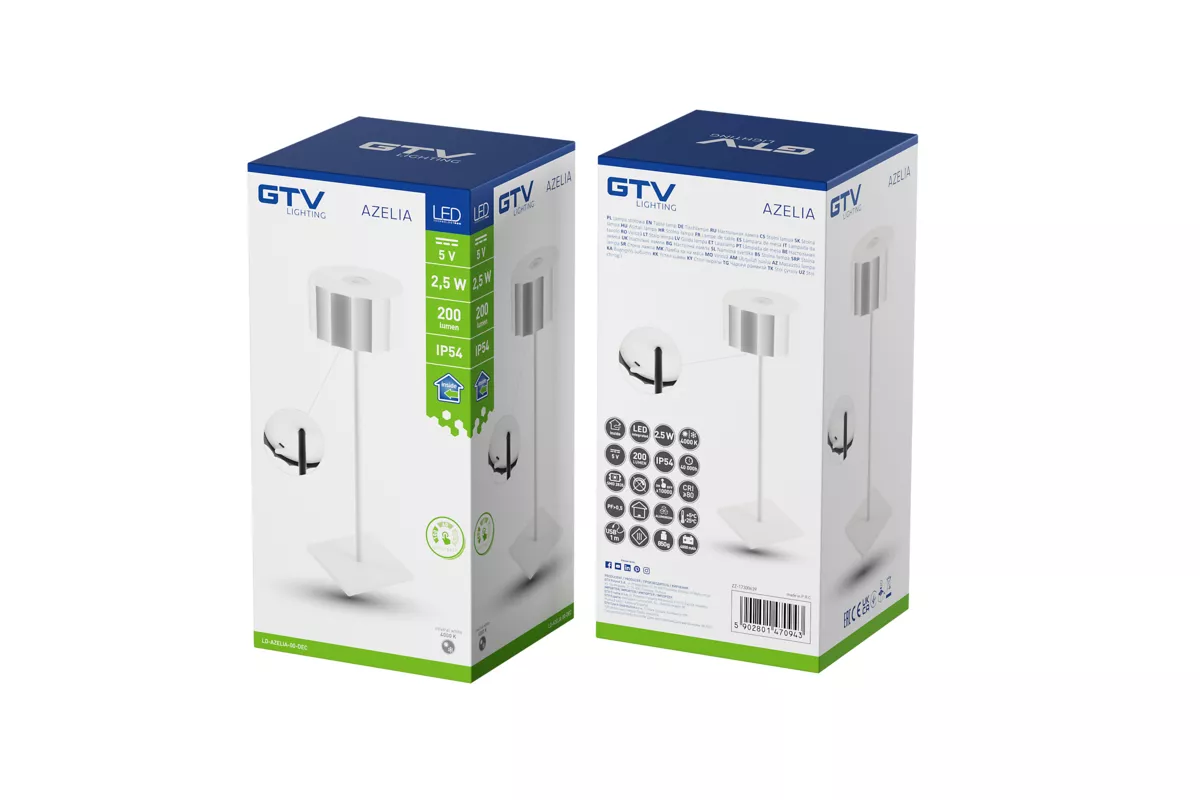 LAMPKA STOŁOWA LED AZELIA, 2,5W, 200lm, DC 5V, 1A,4000 K, BATERIA 4000 mAh, ŚCIEMNIALNA, BIAŁA