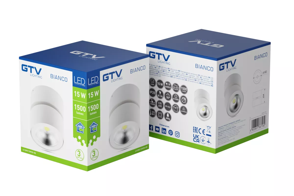 Oprawa LED BIANCO, 15W, 1500lm, AC220-240V, 50/60 Hz, PF>0,5, Ra≥80, IP20, IK06, 36°, 4000K, OKRĄGŁA, BIAŁY