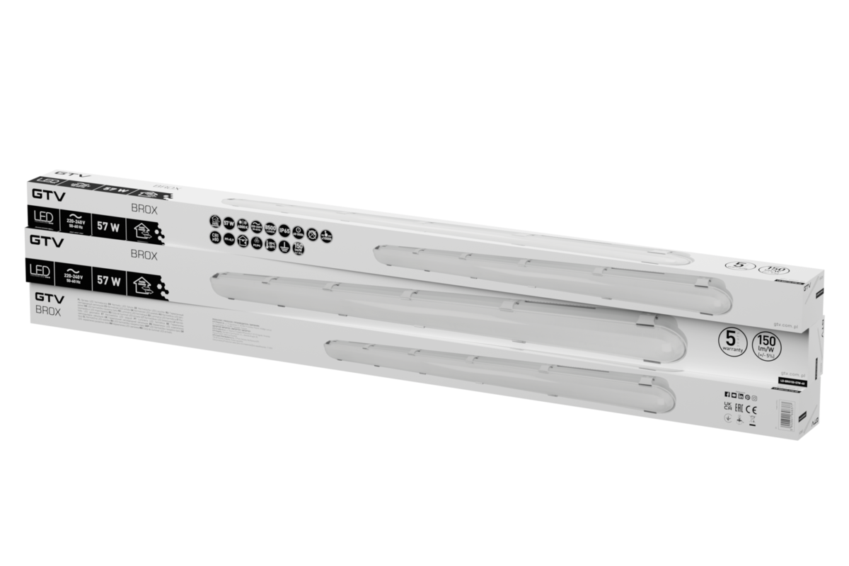 OPRAWA HERMETYCZNA BROX, LED, 57W (power adj.57-33W), 8500lm, 4000K, AC220-240V, IP65, 150cm, 5y