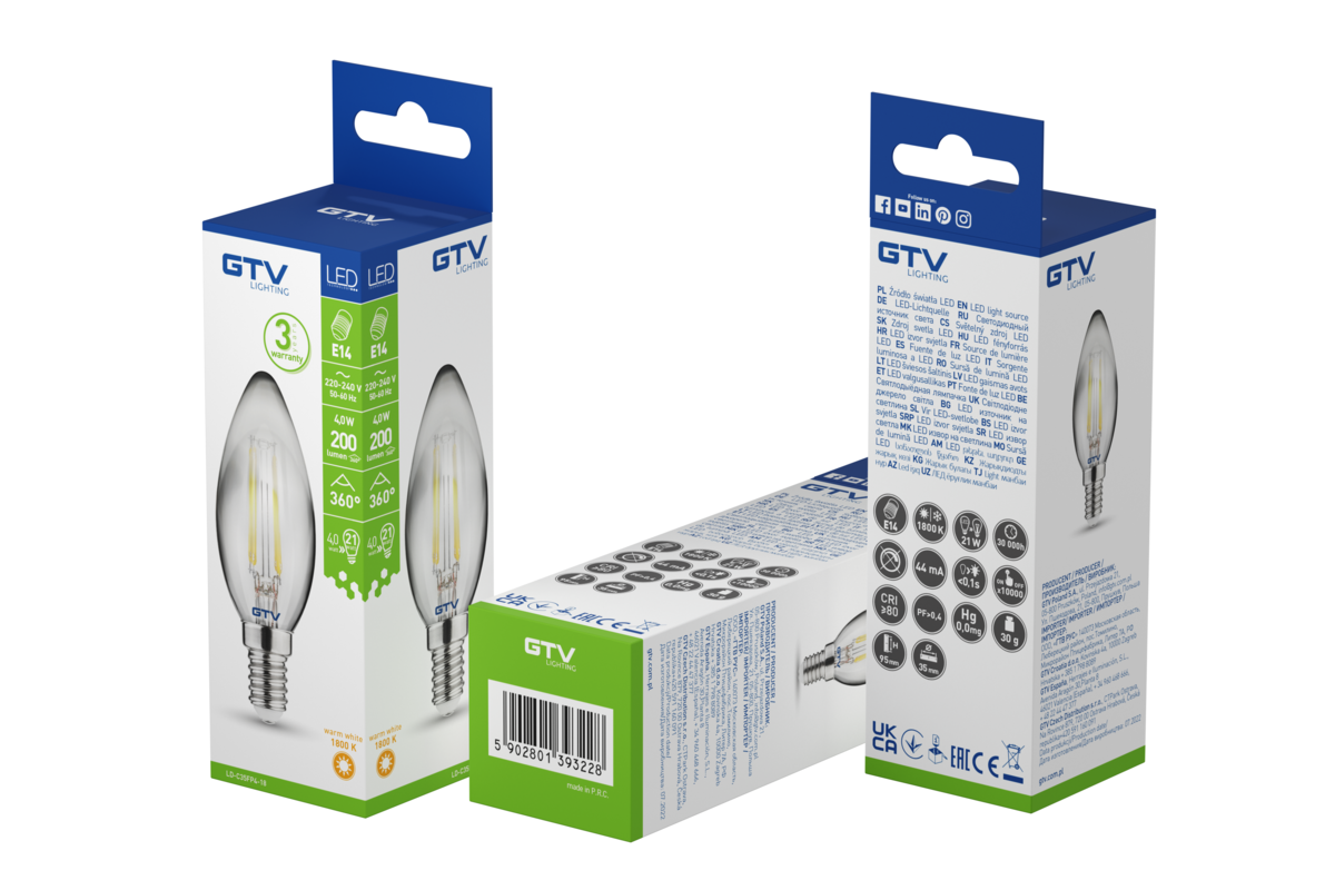ŹRÓDŁO ŚWIATŁA LED DEKORACYJNE, FILAMENT, GREY, C35, 1800K, E14, 4,0W, 200lm, AC220-240V, 360°