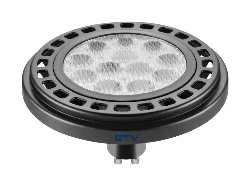 ŹRÓDŁO ŚWIATŁA LED, ES111, 12W, 12XPOWER LED, CZARNA, CIEPŁY BIAŁY,GU10, 3000K, KĄT ŚWIECENIA 45*, ZASILANIE 230V, 950lm, SZYBKA PRZEZROCZYSTA, WYS. 65mm