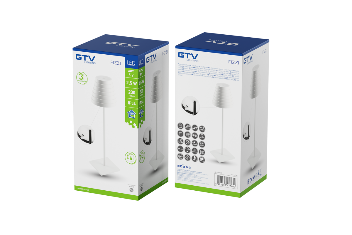 LAMPKA STOŁOWA LED FIZZI, 2,5W, 200lm, DC 5V, 1A,4000 K, BATERIA 4000 mAh, BIAŁA