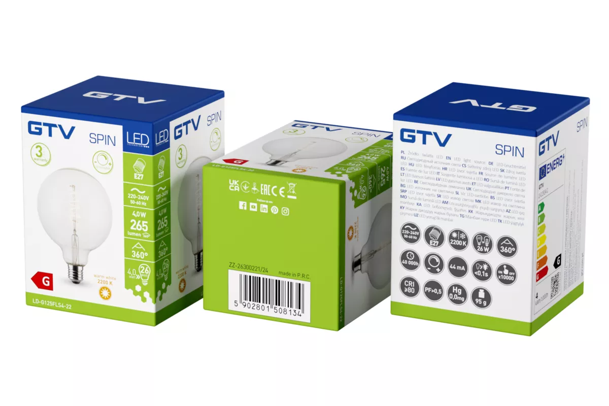 ŹRÓDŁO ŚWIATŁA LED, FILAMENT, SPIN, G125, E27, 4,0W, 265lm, 2200K, AC220-240V, 360°