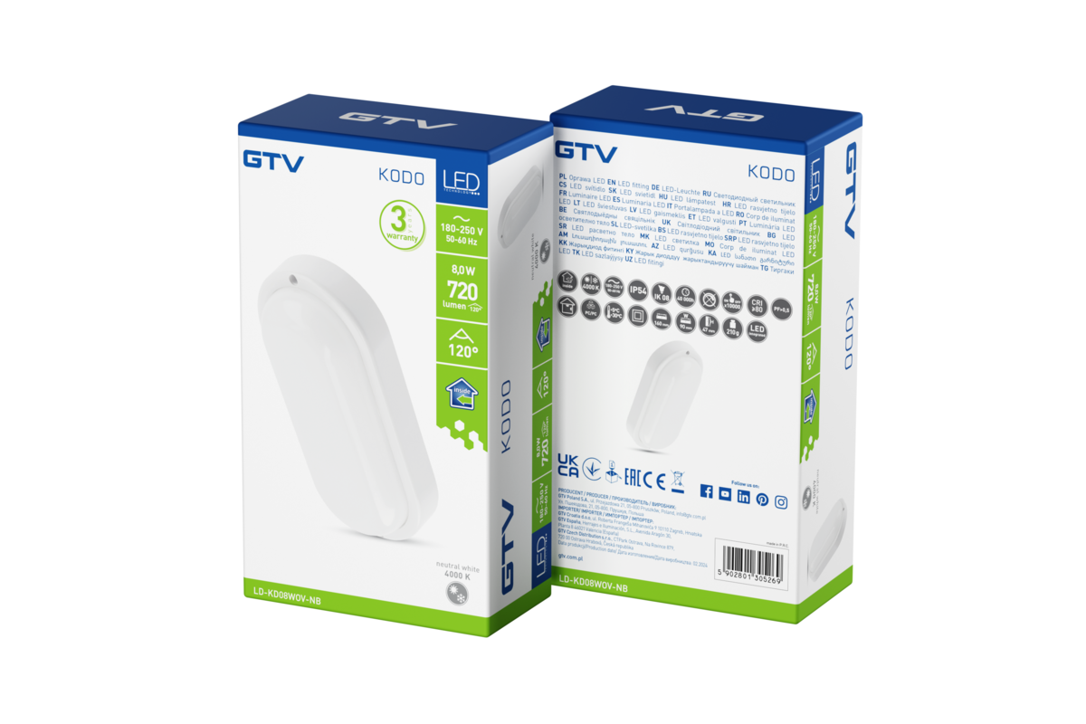 OPRAWA LED KODO-OV, 8W, 720lm, AC175-260V, 50/60 Hz, PF>0,5, Ra≥80, IP54, IK08, 4000K, OWALNA, BIAŁY