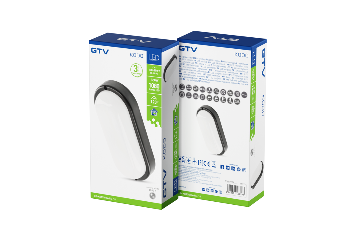 OPRAWA KANAŁOWA KODO, LED, 12W, 1080lm, 4000K, AC180-250V, IP54, IK08, OWALNA, CZARNY