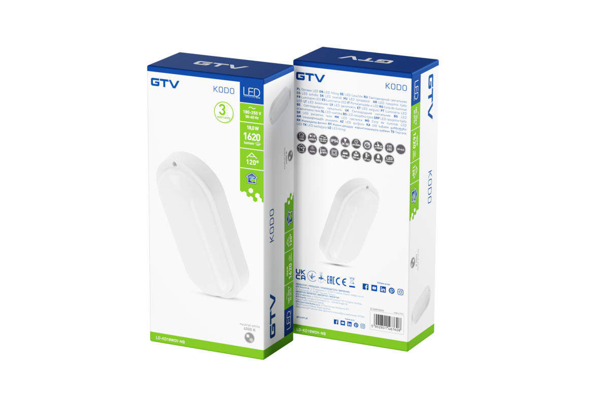 OPRAWA KANAŁOWA KODO, LED, 18W, 1620lm, 4000K, AC180-250V, IP54, IK08, OWALNA, biały