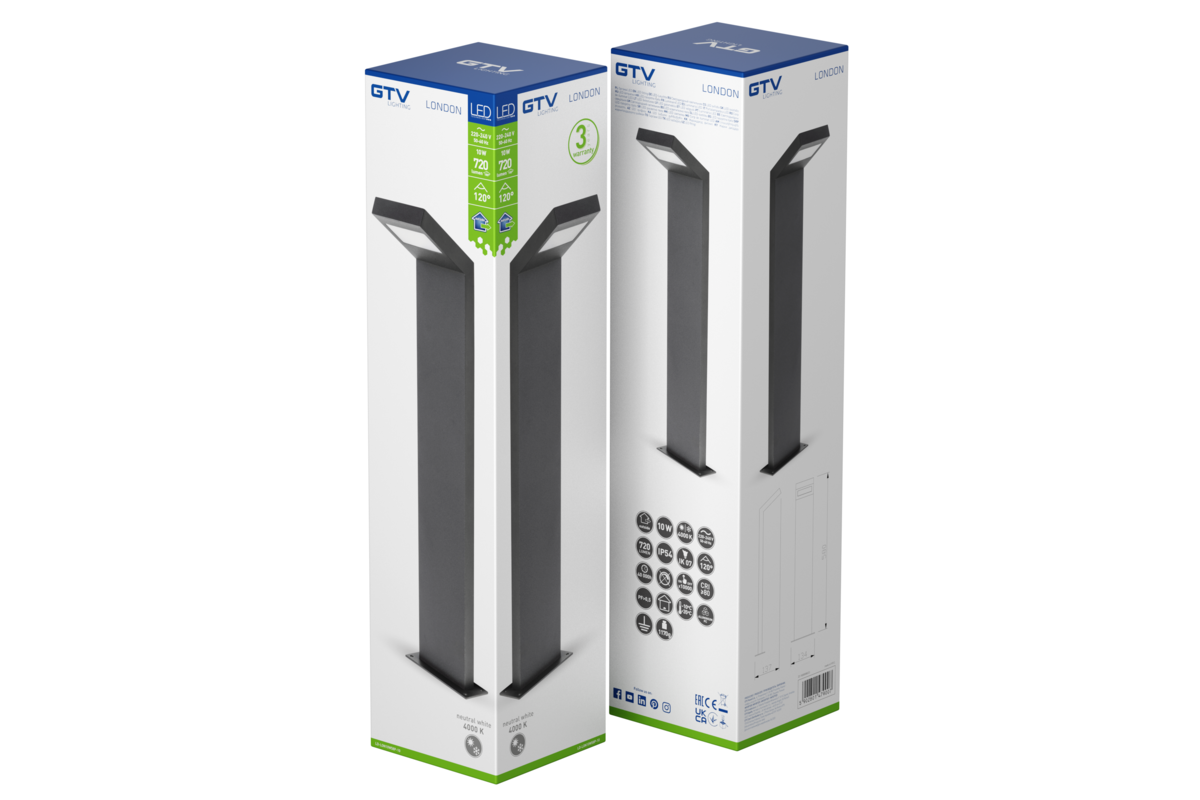 OPRAWA OGRODOWA LONDON LED, 10W, 720lm, IP54, AC220-240V, 50/60Hz, 4000K, SŁUPEK PROSTY, 58 cm, CZARNY
