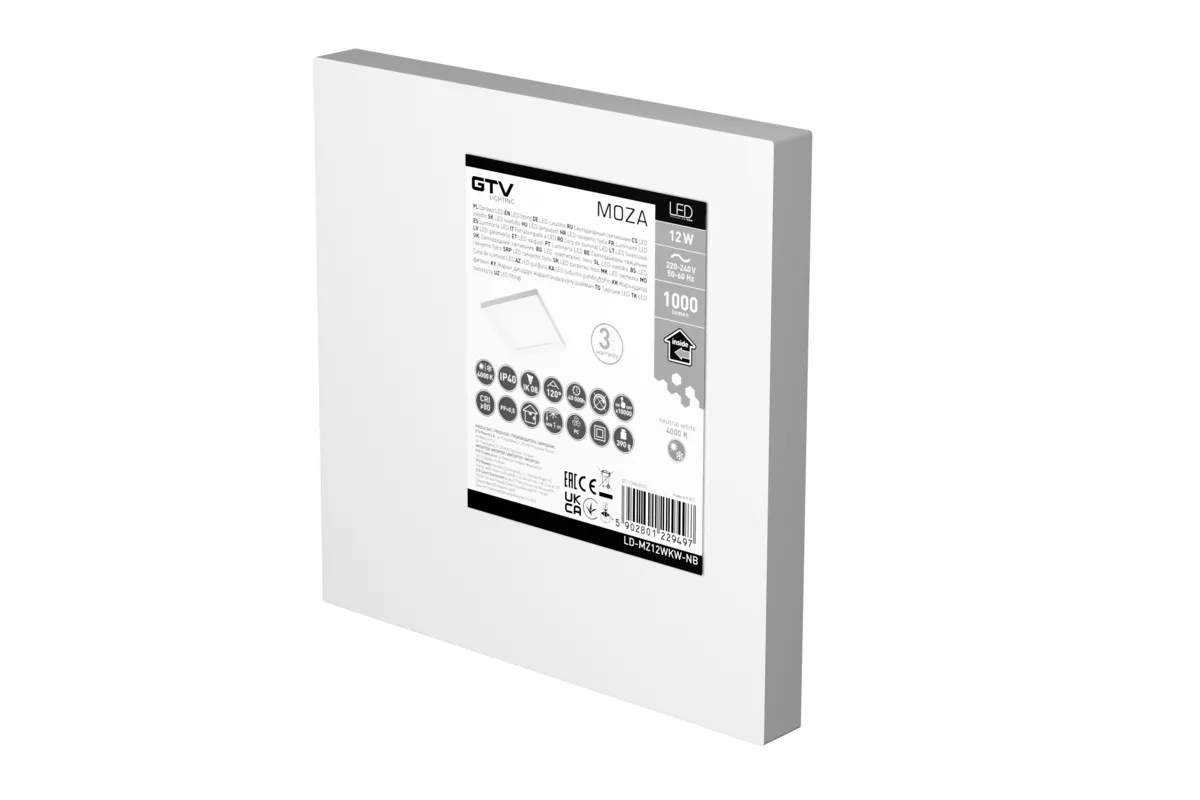 OPRAWA LED MOZA, 12W, 1000lm, AC220-240V, 50/60Hz, PF>0,5, RA≥80, IP40, 120°,4000K, KWADRAT, BIAŁY