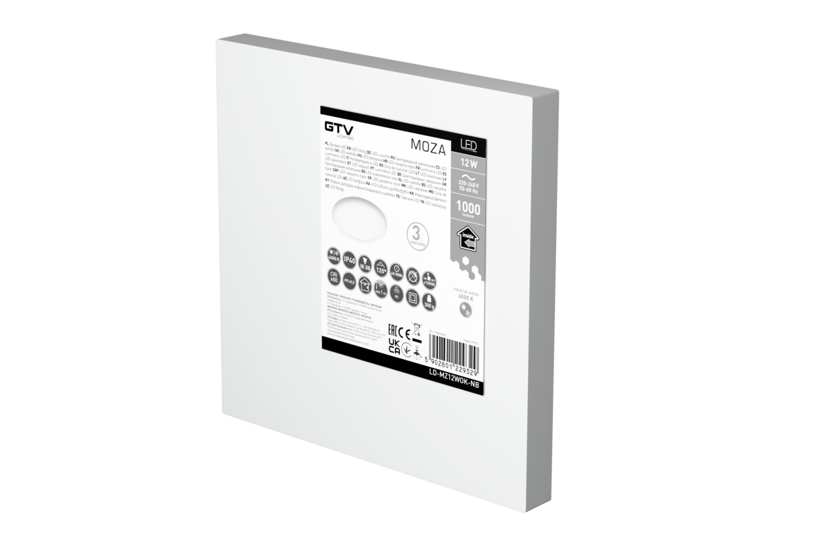 OPRAWA LED MOZA, 12W, 1000lm, AC220-240V, 50/60Hz, PF>0,5, RA≥80, IP40, 120°,4000K, OKRĄGŁA, BIAŁY