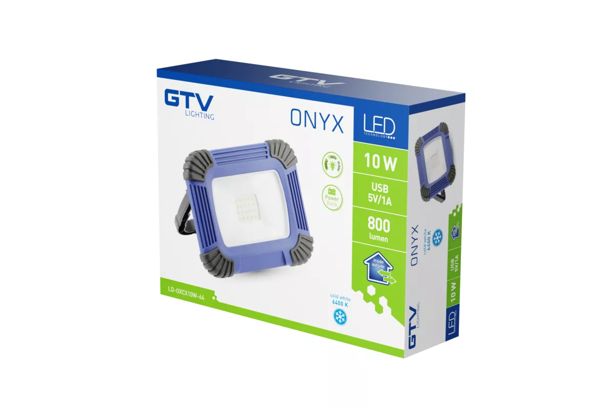 NAŚWIETLACZ LED Z AKUMULATOREM ONYX 10W, 800lm, AC220-240V, 50/60 Hz, PF>0,5, RA>80, IP54, 120°, 6400K, NIEBIESKI