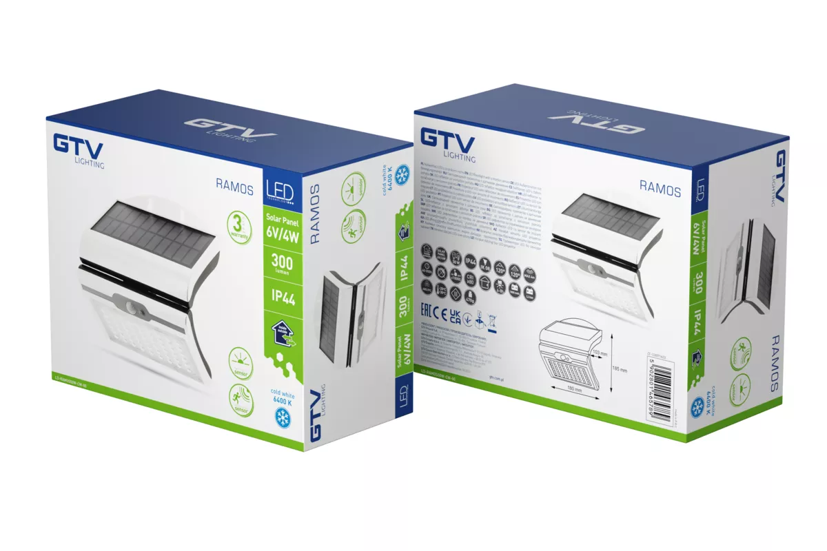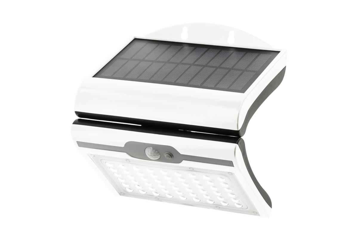 OPRAWA ELEWACYJNA RAMOS SOLARNA Z CZUJNIKIEM RUCHU/ZMIERZCHU, 50W, 300lm, 3,7V 1800mAh, IP44, 6400K, BIAŁA