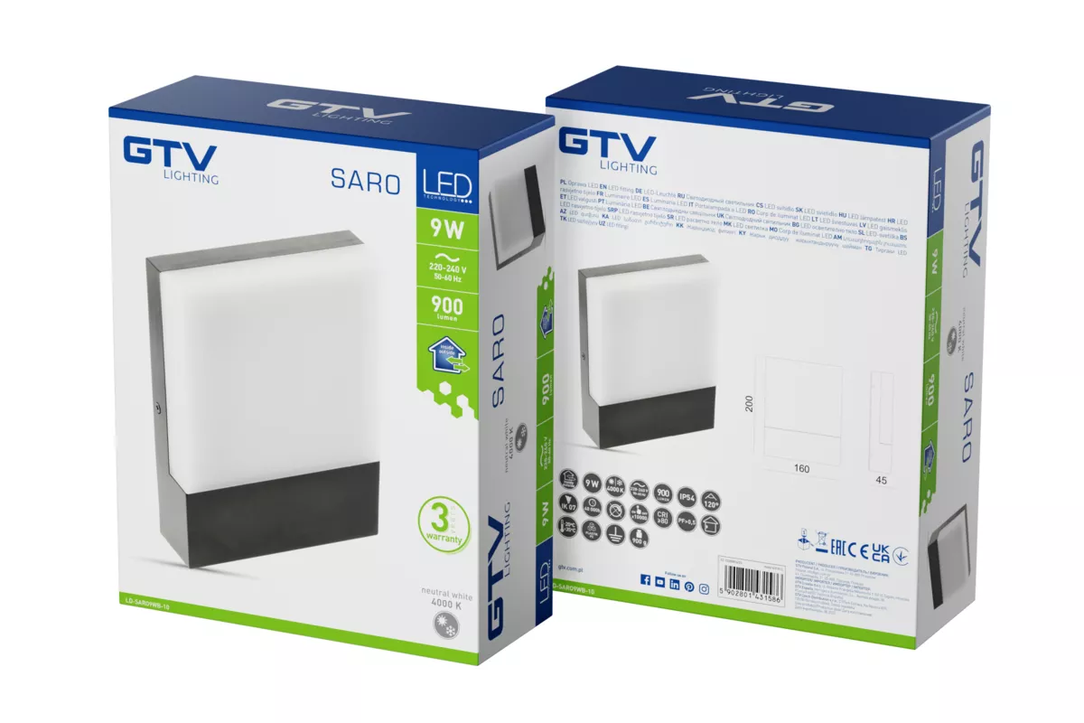 OPRAWA SARO LED 9W, 900lm, IP54, AC220-240V, 50/60Hz, 4000K, CZARNY