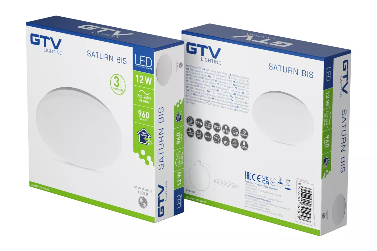 PLAFONIERA SATURN BIS LED, Ø245mm, 4000K, 12W, 960lm, AC180-250V, 50/60Hz, PF>0,5, IP54, 3y