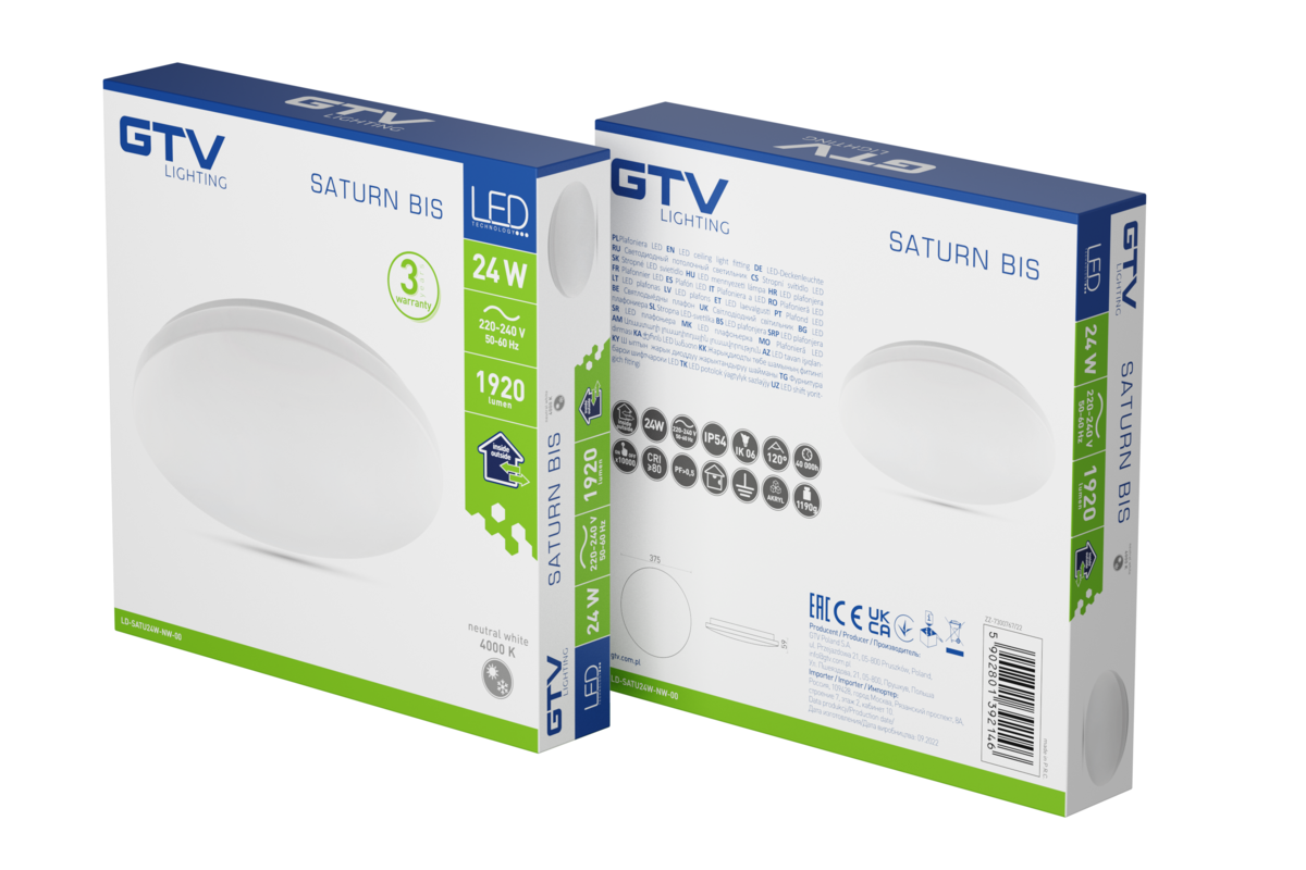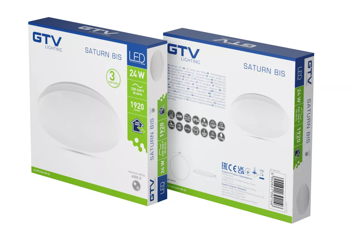 PLAFONIERA SATURN BIS LED, Ø375mm, 4000K, 24W, 1920lm, AC180-250V, 50/60 Hz, PF>0,5, IP54, 3y