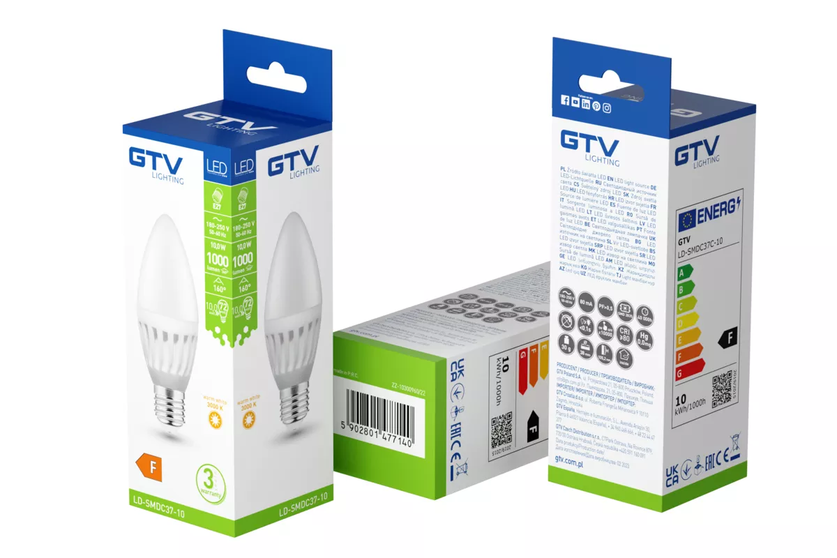 ŹRÓDŁO ŚWIATŁA LED, CERAMIC, A-G, C37, 3000K, E14, 10,0W, AC180-250V, 160°, 1000lm, 80mA, 3y