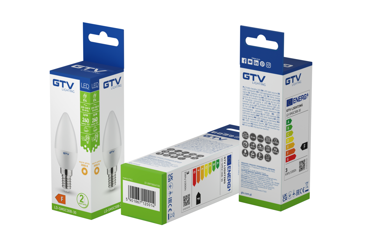ŹRÓDŁO ŚWIATŁA LED, A-G, C30, SMD 2835, 3000K, E14, 3,0W, AC220-240V, 160°, 260lm, 33mA