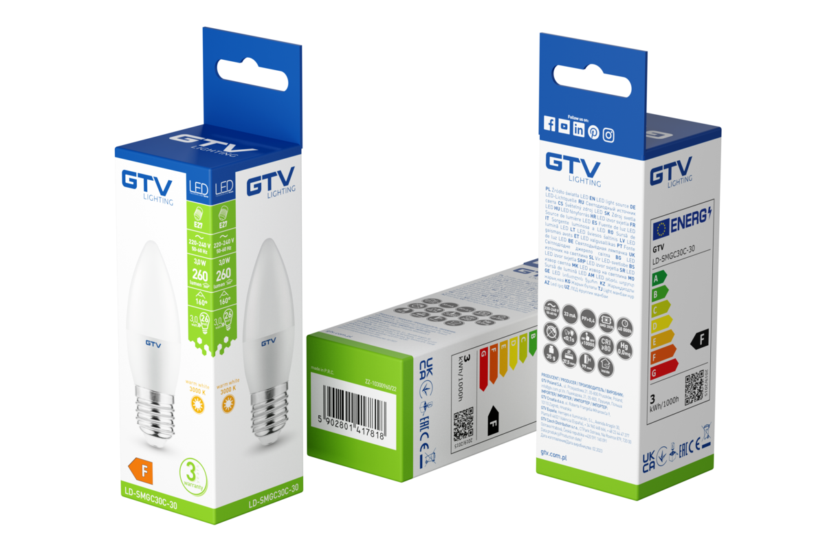 ŹRÓDŁO ŚWIATŁA LED, A-G, C30, SMD 2835, 3000K, E27, 3,0W, AC220-240V, 160°, 260lm, 33mA