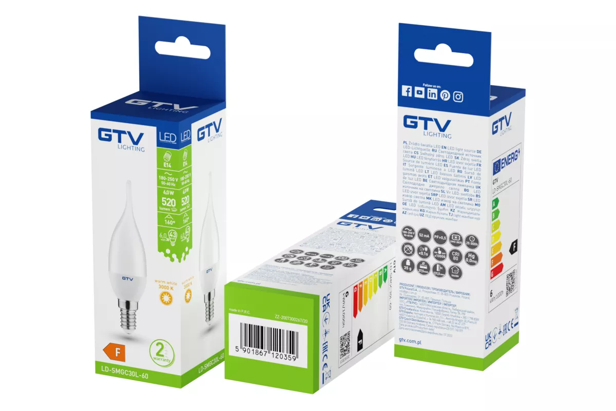 ŹRÓDŁO ŚWIATŁA LED, A-G, C30L, SMD 2835, 3000K, E14, 6,0W, AC180-250V, 160°, 520lm, 52mA