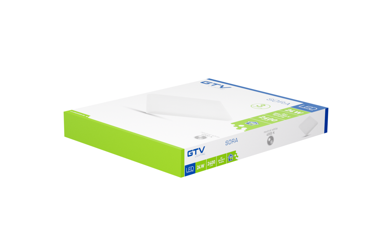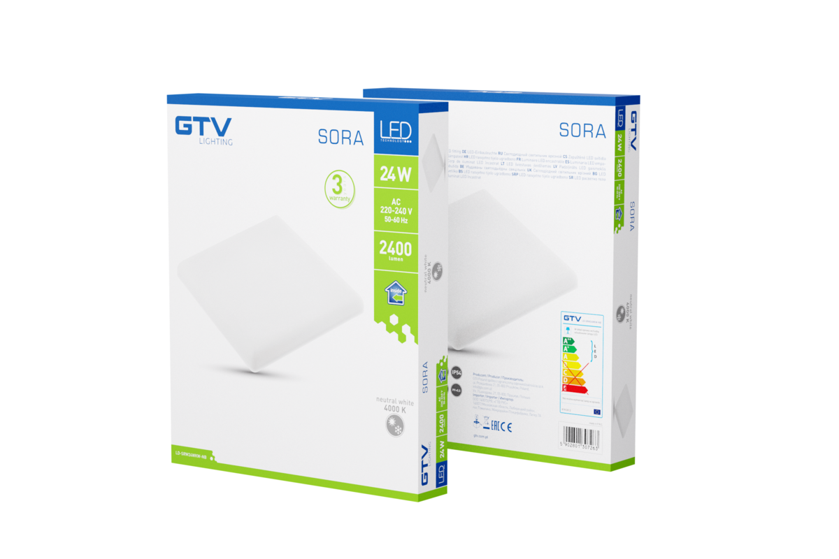 OPRAWA LED SORA TYPU DOWNLIGHT, IP54, 24W, 2400lm, AC220-240V, 50/60Hz, 120°, 4000K, WPUSZCZANA, KWADRAT