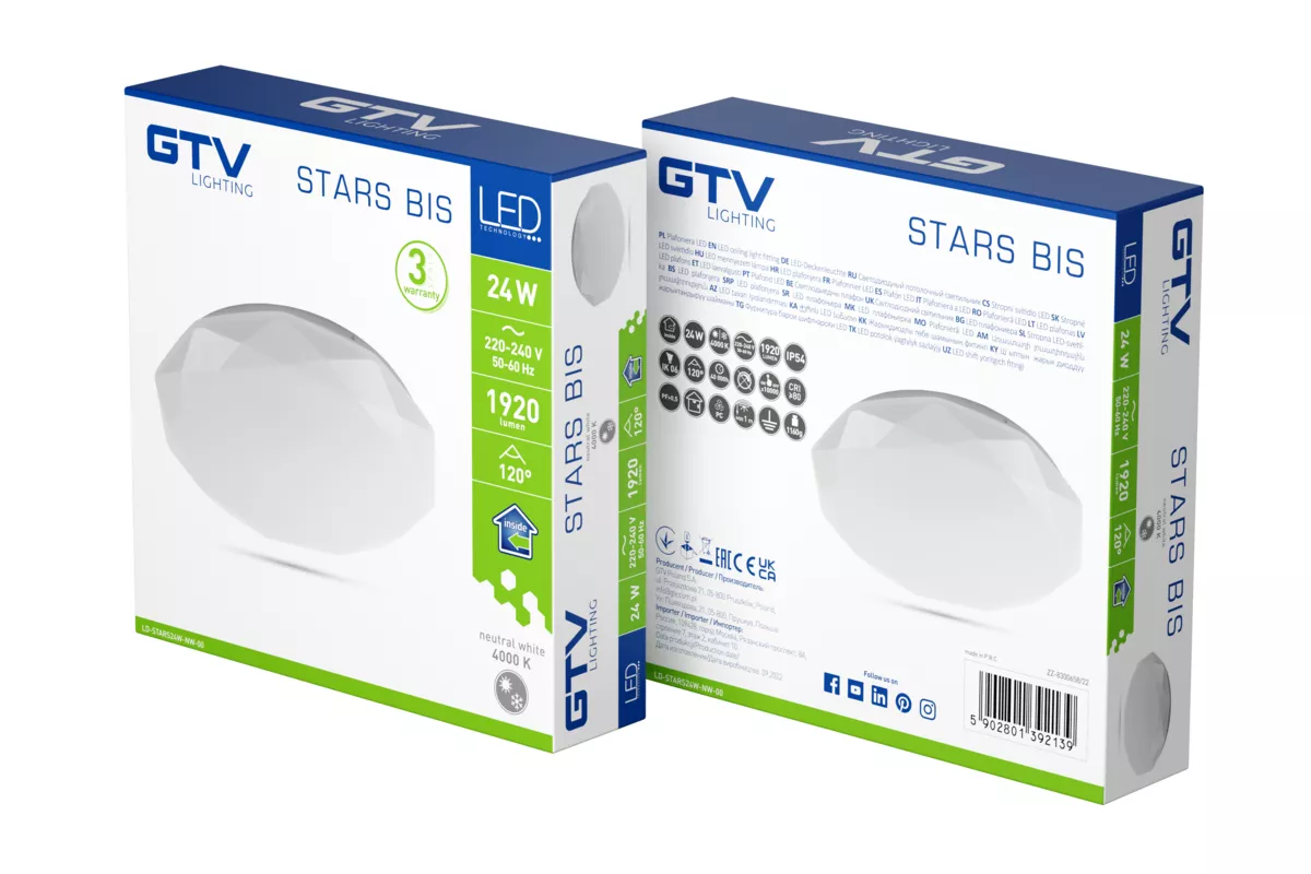 PLAFONIERA STARS BIS LED, Ø330mm, 4000K, 24W, 1920lm, AC180-250V, 50/60 Hz, PF>0,5, IP54, 3y