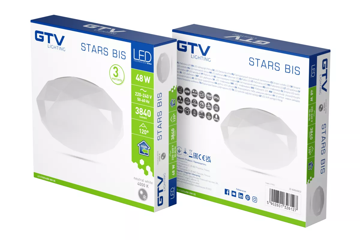 PLAFONIERA STARS BIS LED, Ø480mm, 4000K, 48W, 3840lm, AC180-250V, 50/60 Hz, PF>0,9, IP54, 3y
