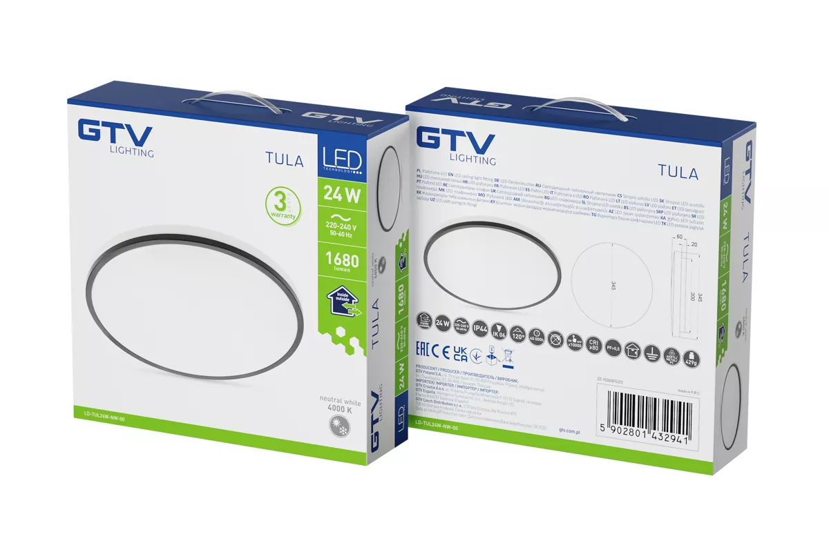 PLAFONIERA TULA LED, Ø350mm, 4000K, 24W, 1680lm, AC220-240V, 50/60 Hz, PF>0,5, IP44, CZARNA, 3y