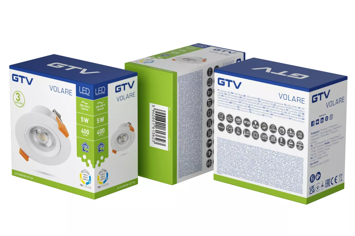 OPRAWA DOWNLIGHT VOLARE, LED, 5W, 400lm, CCT, AC220-240V, IP20, OKRĄGŁA, BIAŁY