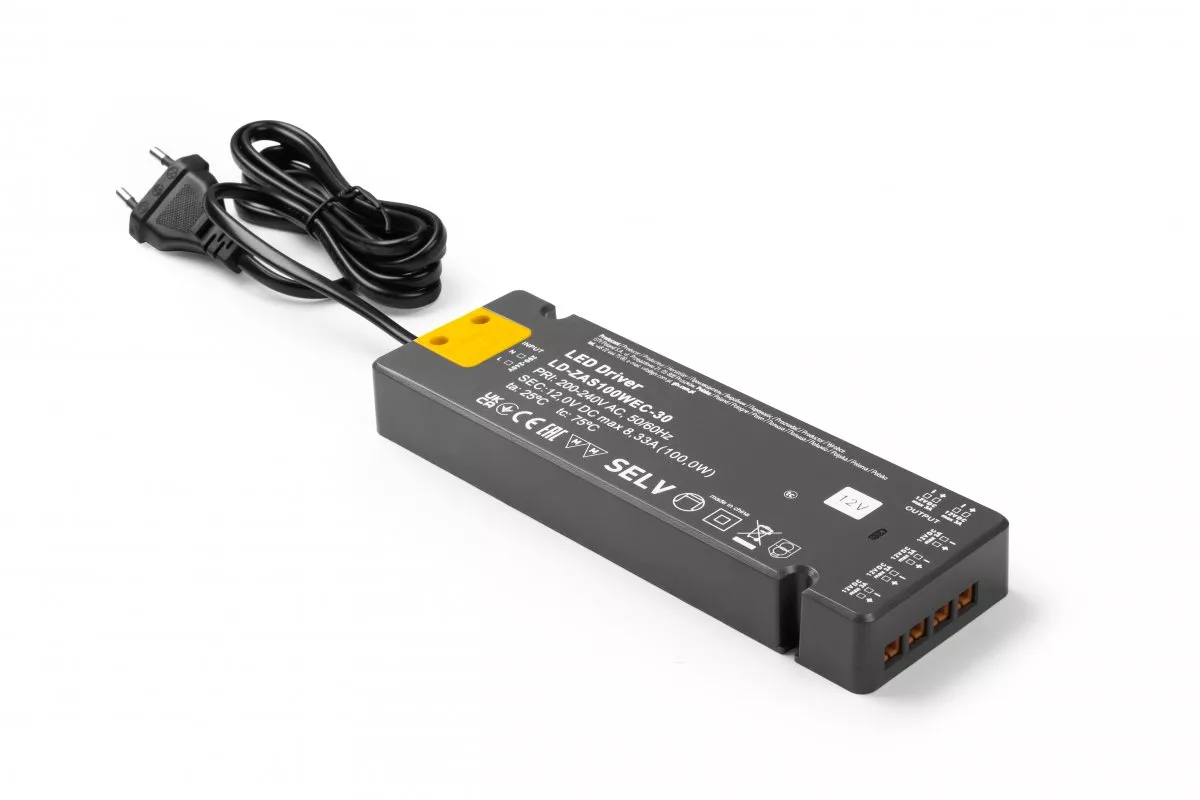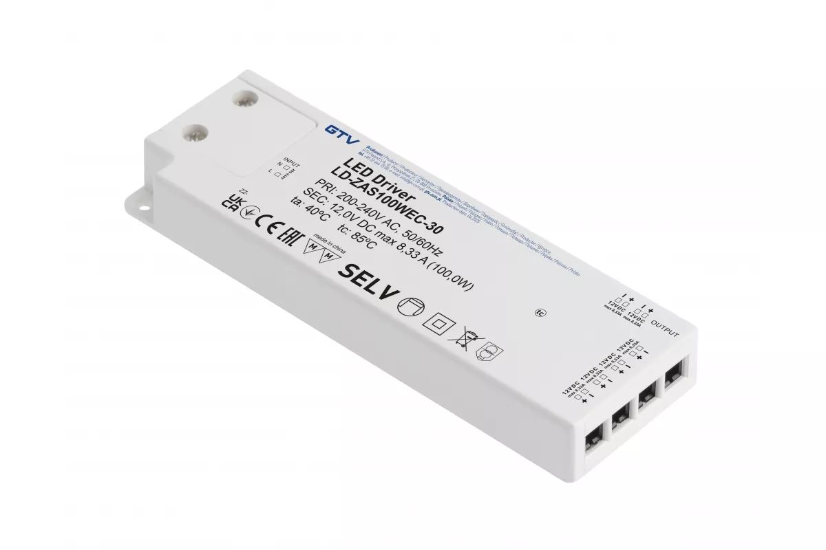 ZASILACZ LED SLIM EASY CLICK 12V,100W, input 220-240VAC, IP20, wym.190x62x21 mm Z MINI AMP i PRZEWODEM