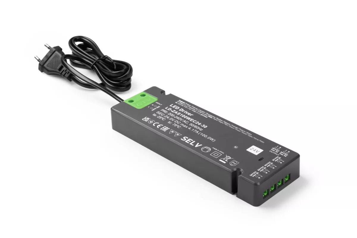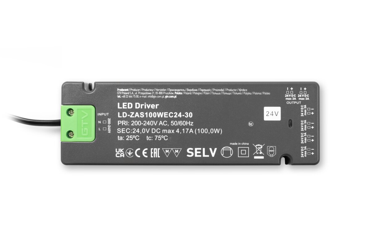 ZASILACZ LED SLIM EASY CLICK 24V,100W,input 220-240VAC,IP20,wym.190x62x21 mm Z MINI AMP i PRZEWODEM