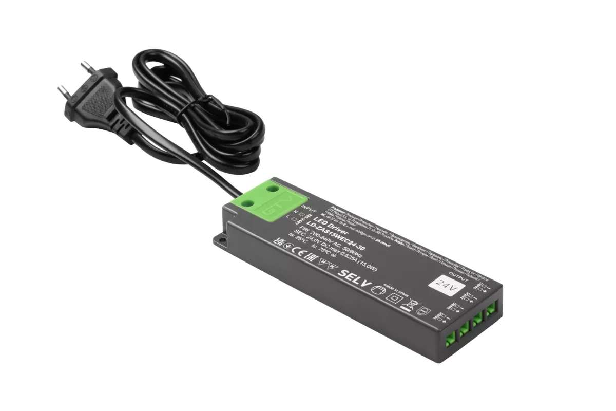 ZASILACZ LED SLIM EASY CLICK 24V,15W, input 220-240VAC, IP20, wym.129x42x16 mm Z MINI AMP i PRZEWODEM