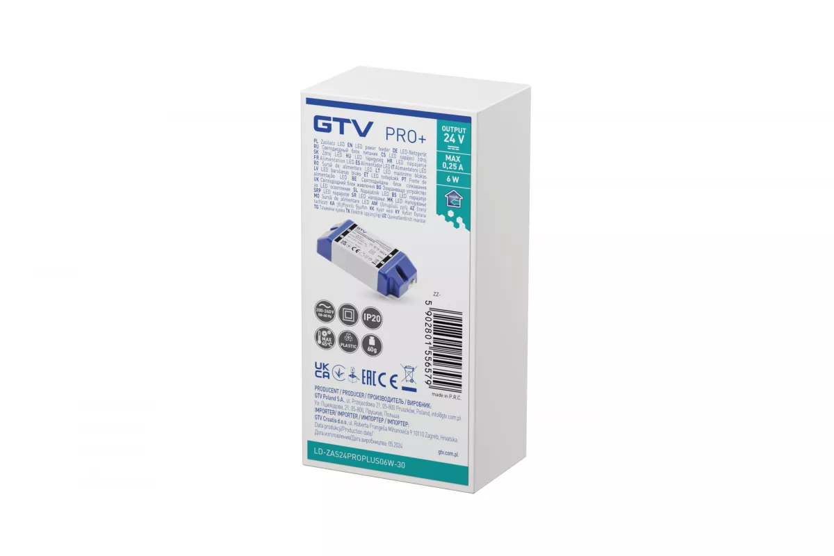 ZASILACZ LED PRO+ 24V, 6W, input 220-240VAC, IP20, wym.90x40x24 mm