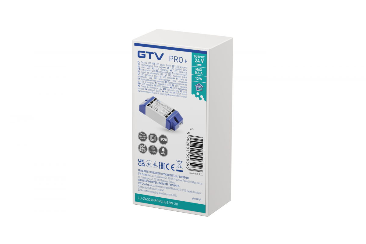 ZASILACZ LED PRO+ 24V, 12W, input 220-240VAC, IP20, wym.90x40x24 mm