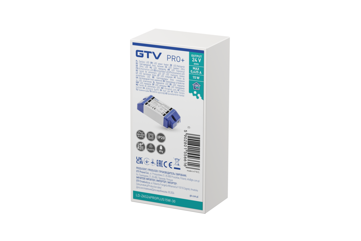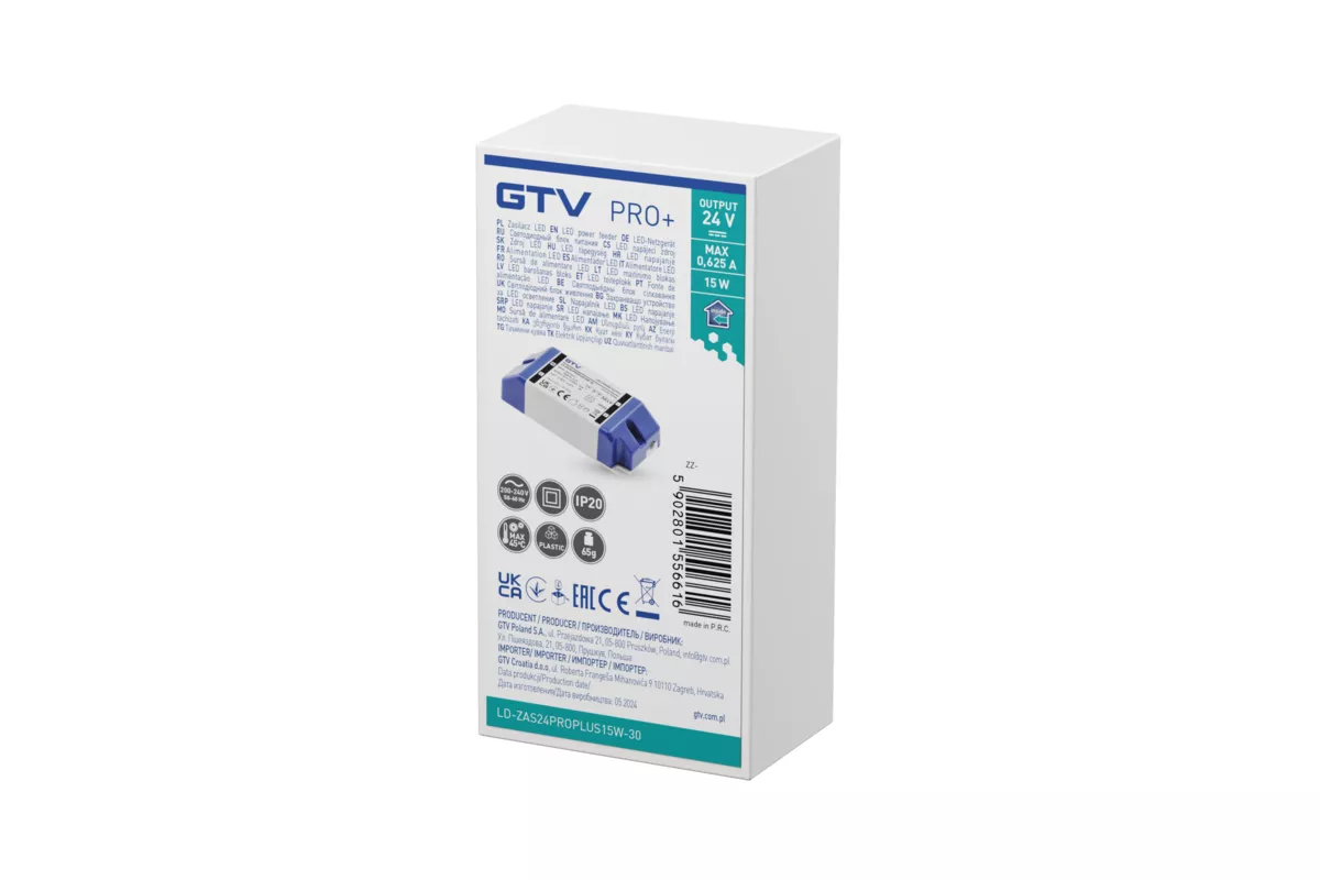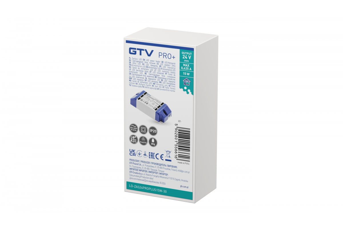 ZASILACZ LED PRO+ 24V, 15W, input 220-240VAC, IP20, wym.90x40x24 mm