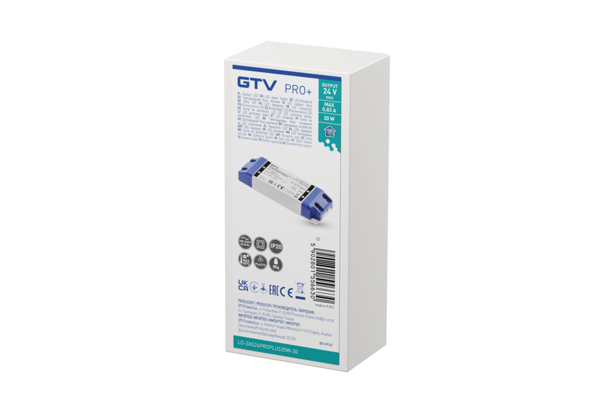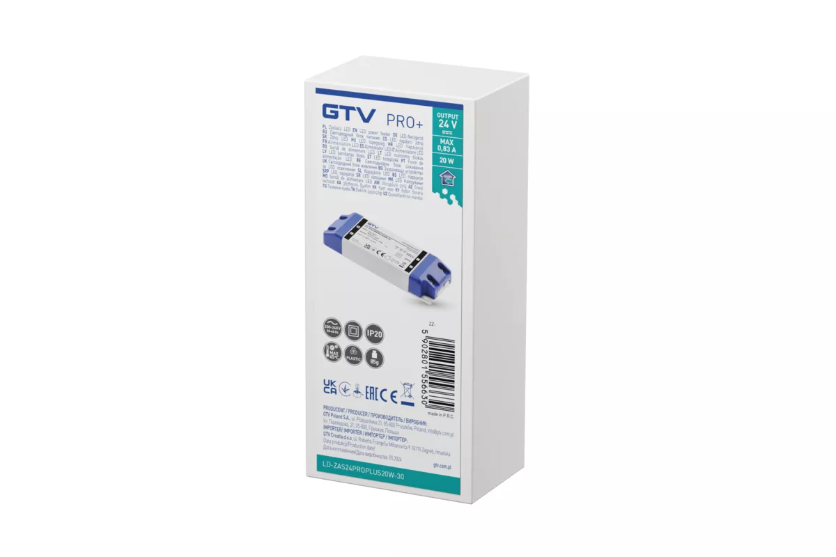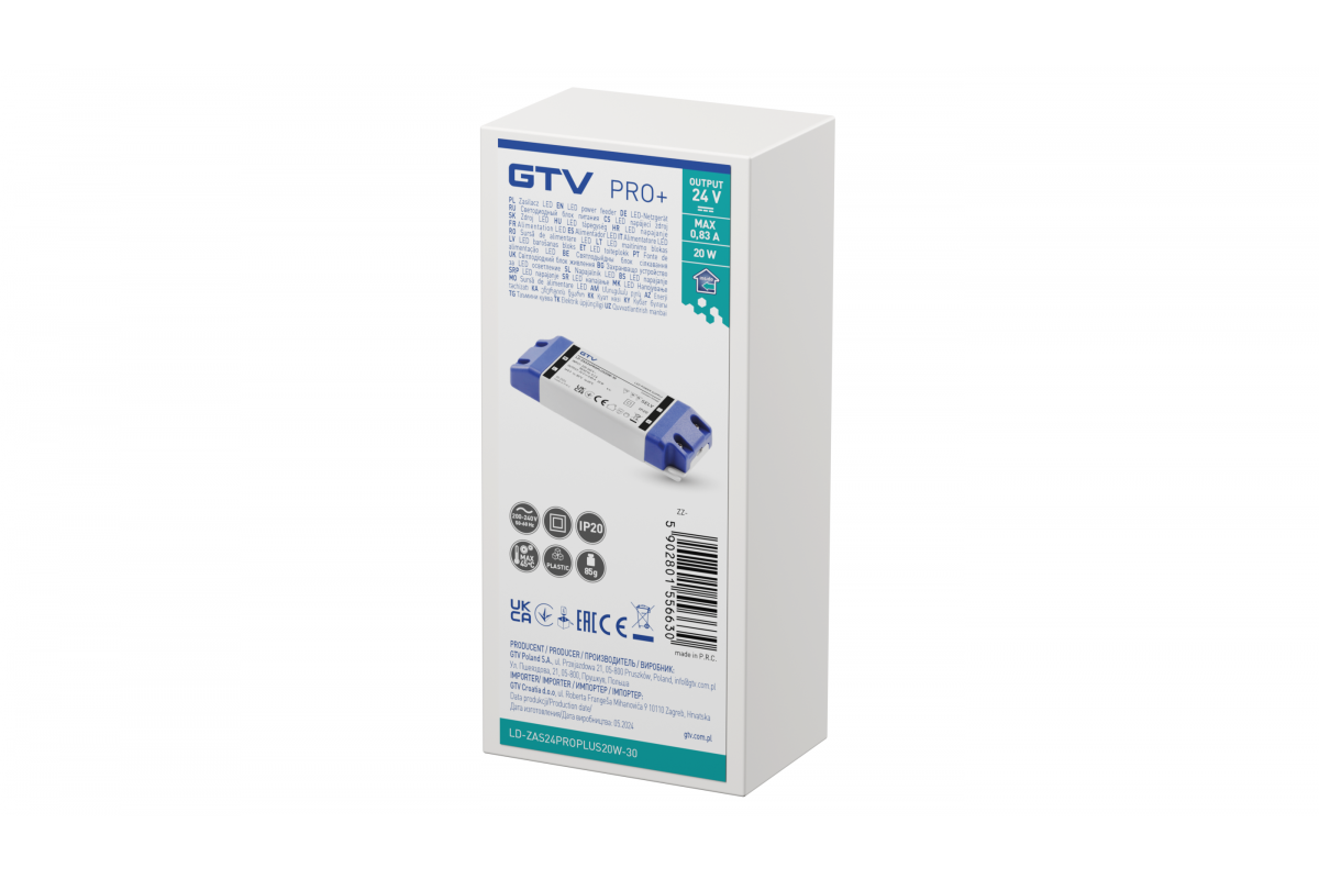 ZASILACZ LED PRO+ 24V, 20W, input 220-240VAC, IP20, wym.120x42x20 mm