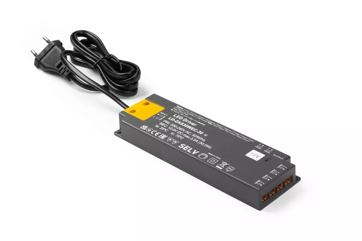 ZASILACZ LED SLIM EASY CLICK 12V,30W, input 220-240VAC, IP20, wym. 160x50x18 mm Z MINI AMP i PRZEWODEM