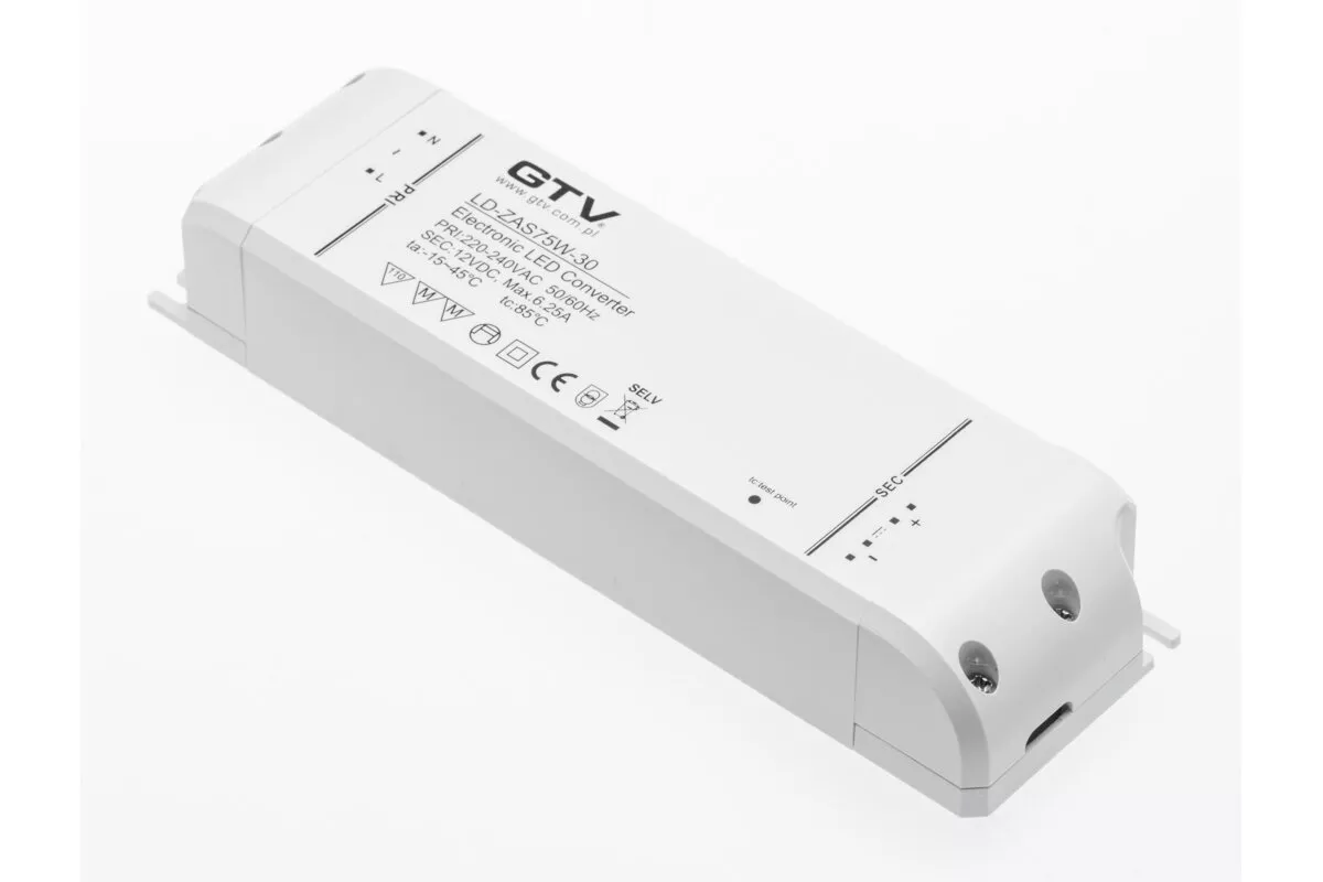 TRANSFORMATOR LED WE: 220V-240V~50Hz WY: 12V DC/75W. IP20