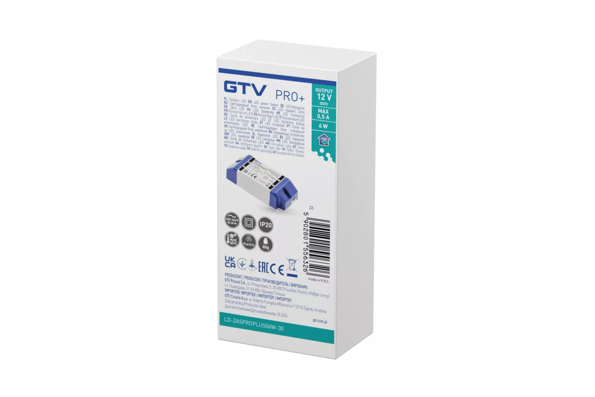 ZASILACZ LED PRO+ 12V, 6W, input 220-240VAC, IP20, wym.90x40x24 mm