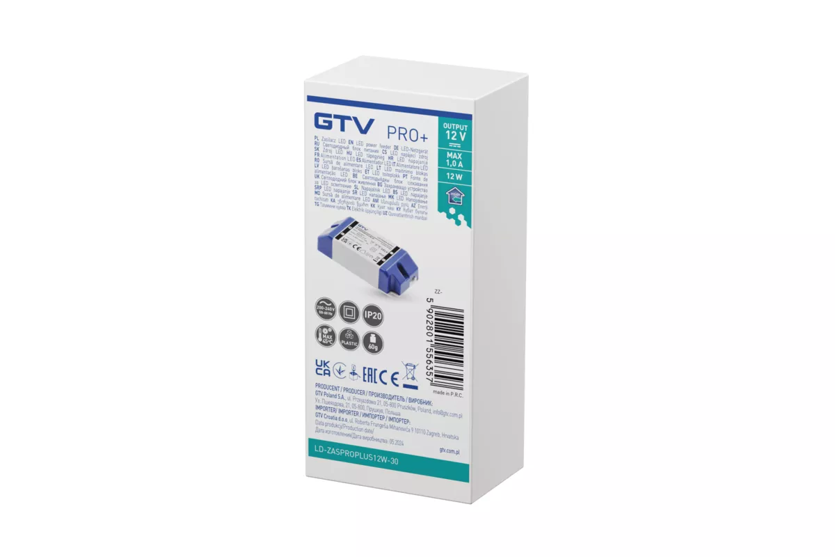 ZASILACZ LED PRO+ 12V, 12W, input 220-240VAC, IP20, wym.90x40x24 mm