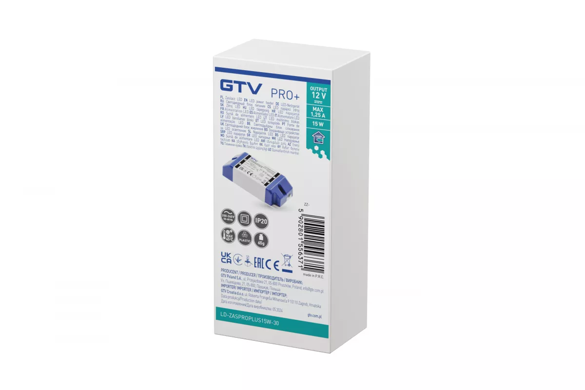 ZASILACZ LED PRO+ 12V, 15W, input 220-240VAC, IP20, wym.90x40x24 mm