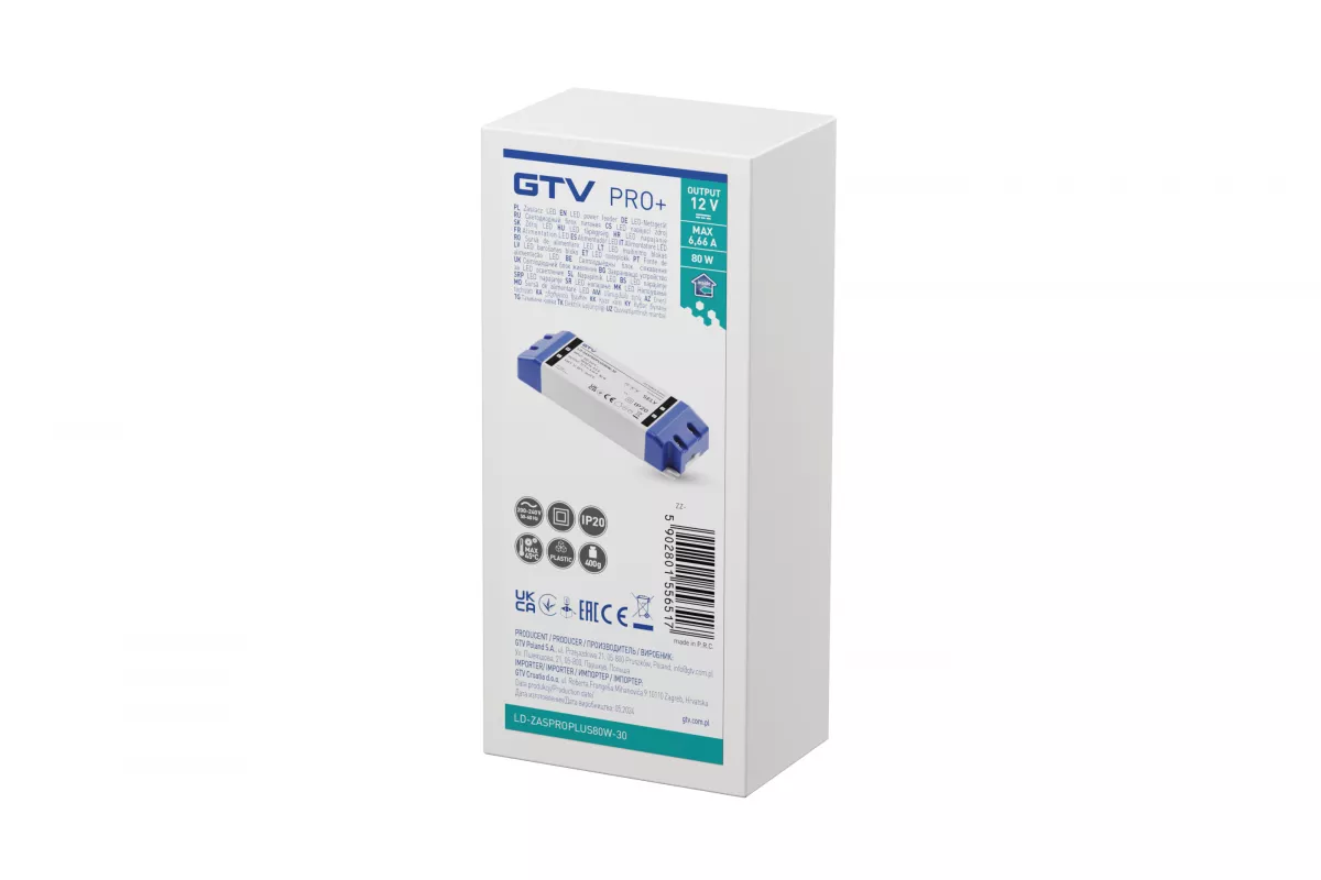 ZASILACZ LED PRO+ 12V, 80W, input 220-240VAC, IP20, wym.170x57x32 mm