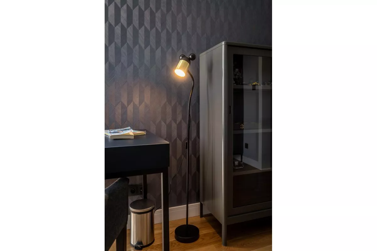 LAMPA PODŁOGOWA MOUSE, 0086, max.250V, 50/60Hz, 1*E27, max.25 W, IP20, śr.8 cm, CZARNAO/ZŁOTA