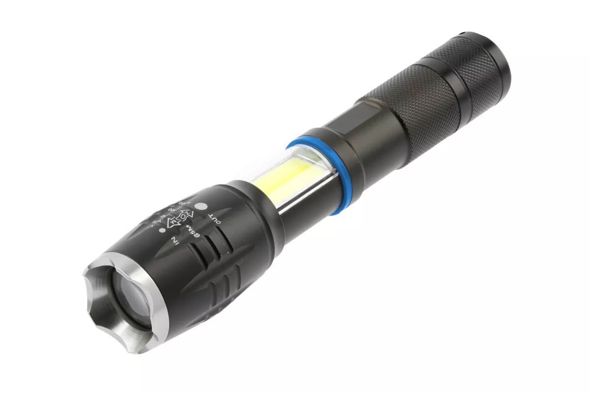 LATARKA LED NA BATERIE 1XAAA, 8W, 800lm, 6400K, 500m, IP44, CZARNA
