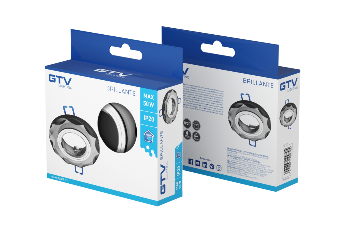 SUFITOWA OPRAWA PUNKTOWA BRILLANTE, SZKŁO, CZARNY KRYSZTAŁ, OKRĄGŁA