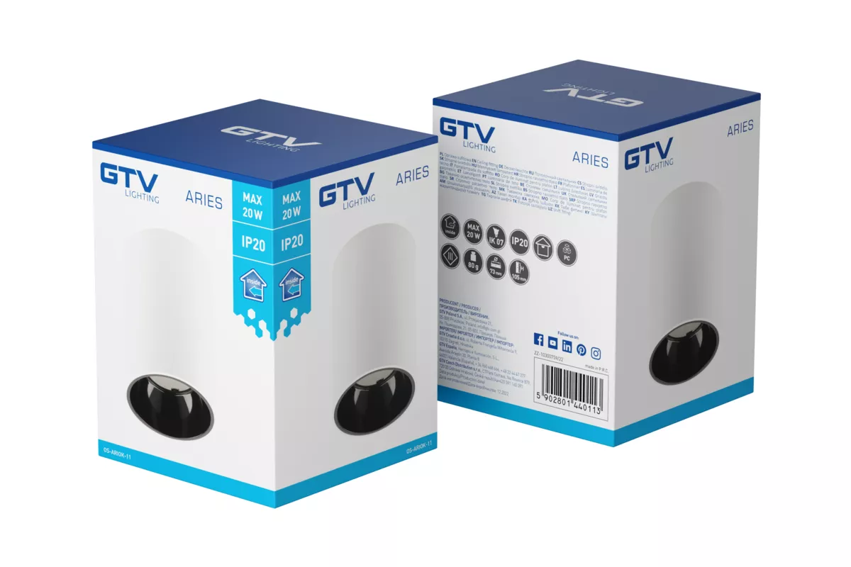 OPRAWA SUFITOWA ARIES, PC, 73x105mm, IP20, max 20W, OKRĄGŁA, BIAŁY/CZARNY