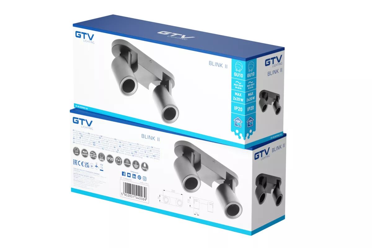 OPRAWA SUFITOWA BLINK II, max. 250V, 50/60 Hz, GU10, max. 20W*2, IP20, PODWÓJNA, CZARNA