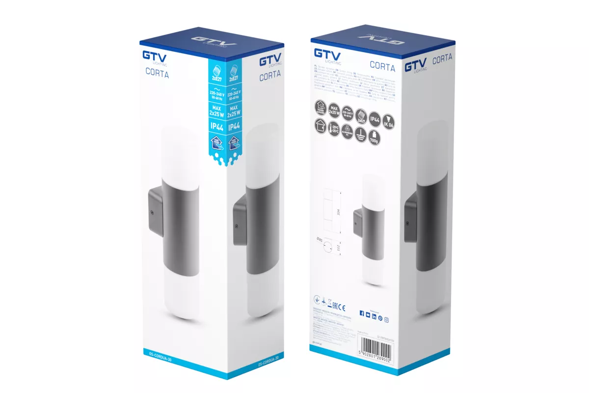 OPRAWA OGRODOWA CORTA-AUD, 2xE27, 2xMAX.25W, IP44, AC220-240V, 50-60Hz, KINKIET PROSTY GÓRA DÓŁ, GRAFIT