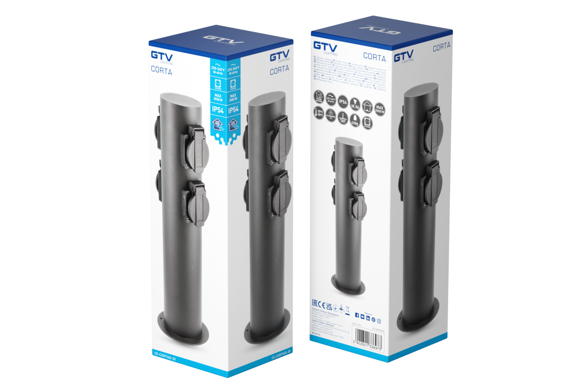 SŁUPEK OGRODOWY CORTA-P 36, IP54, AC220-240V, 50-60Hz, 4*GNIAZDO SCHUKO, max.3500W, SŁUPEK, GRAFIT