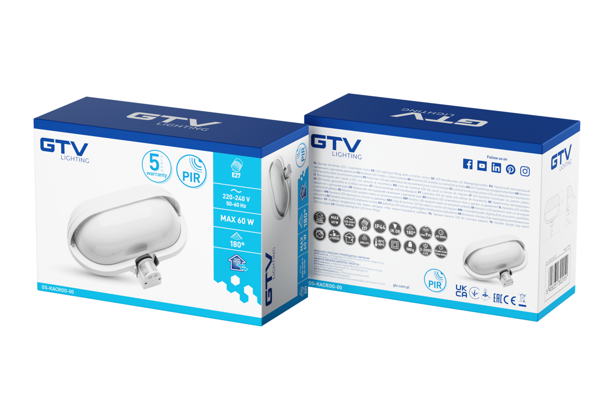 OPRAWA KANAŁOWA Z CZUJNIKIEM RUCHU, BIAŁA, 230V AC, 60W, E27