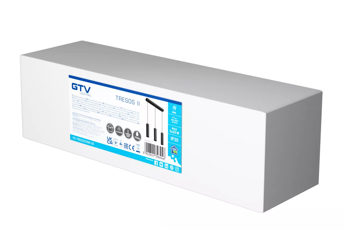 OPRAWA ZWIESZANA TRESOS II, max. 250V, 50/60Hz, 3xGU10, IP20, max. 3x20W, CZARNA